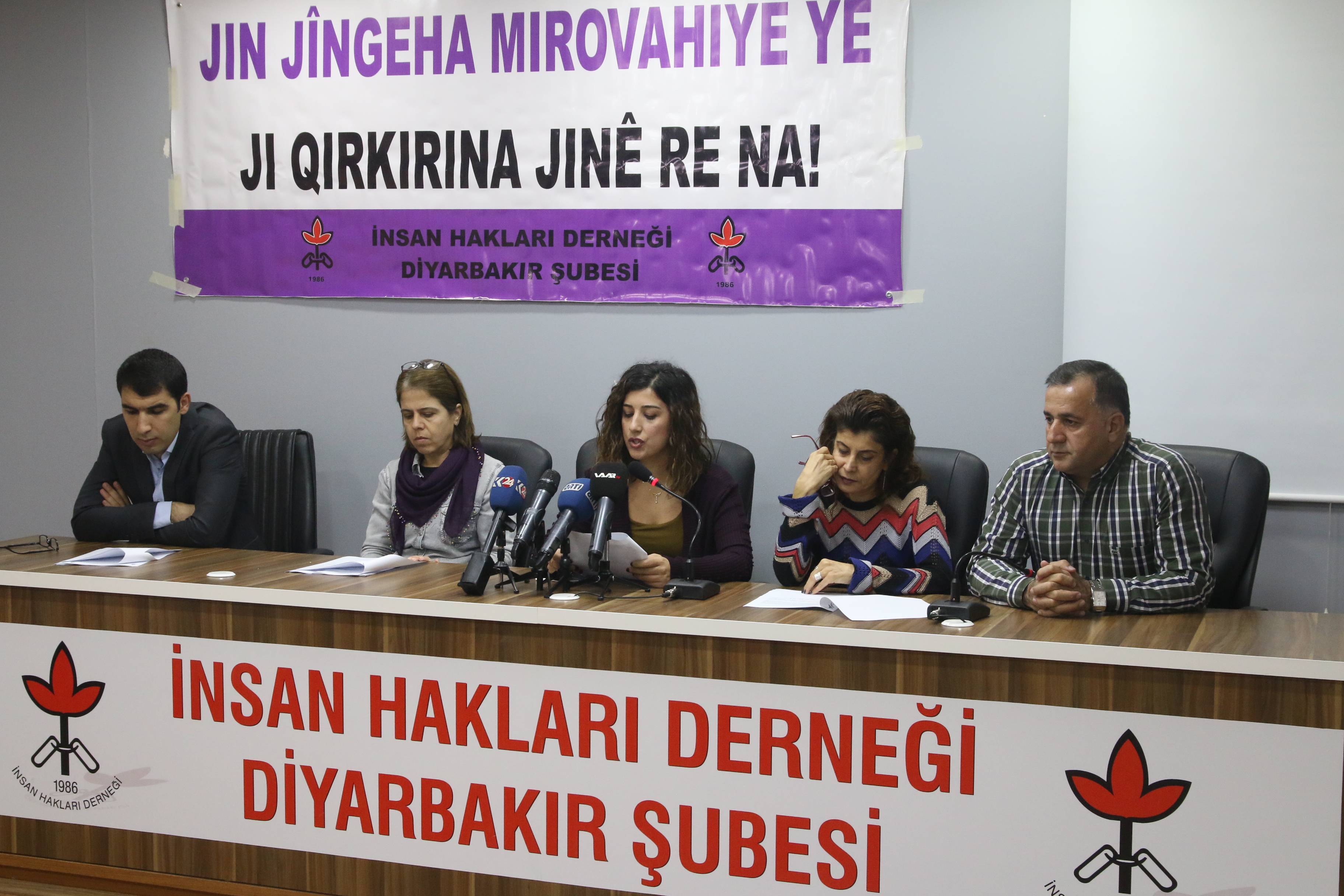 Beriya aşkerekirina raporê Endama Komîsyona Jinan a ÎHD’a Amedê Hatîce Demîr li ser girîngiya 25’ê Mijdarê axivî û diyar kir ku li her deverê cîhanê jin rastî heman tundiyê tên û li Tirkiyeyê her ku diçe newekheviya jin û zilaman kûr dibe. Demîr da zanîn ku li gorî endeksa wekheviya zayendiya Forma Aborî ya Cîhanê (WEF) a 2017’an di warê aborî, siyaset, tenduristî û perwerdehiyê de di nav 144 welatan de Tirkiye di rêza 31’emîn de ye û ev tablo karneya Tirkiyeyê ya der barê jinan de her tiştî radixîne ber çavan.