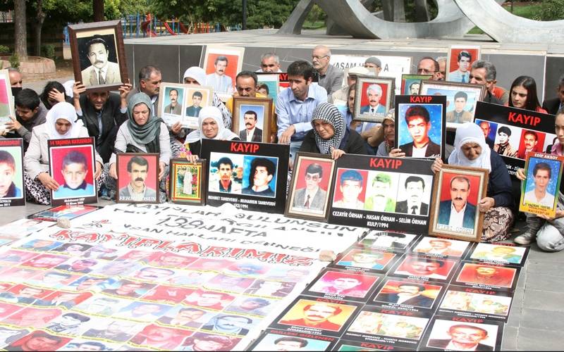 Yapılan konuşmaların ardından kayıp yakınları 5 dakika oturma eylemi yaparak eylemlerine son verdi.