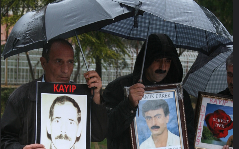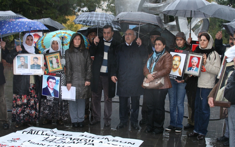İnsan Hakları Derneği (İHD) Diyarbakır Şubesi ve kayıp yakınlarının her hafta düzenlediği "Kayıplar bulunsun, failler yargılansın" eylemi 145’inci haftada Koşuyolu Parkı Yaşam Hakkı Anıtı önünde gerçekleştirdi. Yoğun sağanak yağmura rağmen eylemi gerçekleştiren İHD, kaybedilenler ile faili meçhul cinayetlere kurban gidenlerin resimlerinin yer aldığı dev posteri yere sererken, kayıp yakınları da kaybedilen aile bireylerinin resimlerini taşıdı. Eylemde açılış konuşması yapan İHD Diyarbakır Şube Sekreteri Raci Bilici’nin konuşmasının ardından İHD Genel Başkanı Öztürk Türkdoğan söz aldı. Türkdoğan, kaybedilenlerle ilgili İHD öncülüğünde düzenlenen eylemler nedeniyle yargı baskısı ile karşı karşıya kaldıklarını ve tutuklamalar ile yıldırılmak istendiklerine dikkat çekti. Kaybedilenlerle ilgili etkili soruşturma ve kovuşturma yapılıncaya kadar ve Türkiye BM Kayıplar Sözleşmesi'ne taraf oluncaya kadar etkinliklerinin devam edeceğini söyleyen Türkdoğan, aksi halde insan hakları savunucuları olarak açılan davalarla yıldırılmayacaklarını kaydetti.