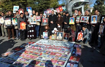 İHD öncülüğünde 42'nci kez Urfa merkezde Karakoyun İş Merkezi'nin önünde bir araya gelen kayıp aileleri yakınlarının akıbetini sordu. Ellerinde kaybedilen ve öldürülen yakınlarının fotoğraflarını taşıyan aileler, son dönem yaşanan gözaltların artık son bulmasını istedi. Açıklama yapan İHD Urfa Şube Sekreteri Nail Çetin, iki yılı aşkın süredir hak, hukuk ve adalet taleplerinde bulunduklarını dile getirerek, sürekli barış dili kullanmalarına rağmen kendilerine yönelik ciddi baskı ve yıldırmanın olduğunu söyledi. Hükümetin kendisine muhalif olan sesleri susturmak istediğini belirten Çetin, "Tek suçları demokratik barışçıl girişimlere destek olan arkadaşlarımızın uğradığı haksızlığı dile getirmekte ve sesimiz duyurmaktayız. Ancak 12 Eylül'ü aratan bir hava ile karşı karşıyayız" dedi. Çetin, "Halkına bu uygulamaları reva görenler başka diktatörlere demokrasi dersi veremez" diyerek, "Hak hukuk ve adalet iklimi ülkeye egemen oluncaya kadar mücadelemize devam edeceğimize dost da düşman da bilsin istiyoruz" diye konuştu.