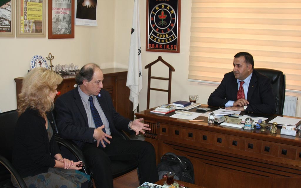 DİYARBAKIR – İHD Diyarbakır Şubesi’ni ziyaret eden Nükleer Silah Uzmanı Dr. Robert M. Gould, şube yetkililerinden bölgede son günlerde gündeme gelen kimyasal silah kullanımına ilişkin bilgi aldı. İHD Diyarbakır Şube Sekreteri Raci Bilici, Gould’e hazırladıkları kimyasal silah raporunu vererek, bu konuda araştırma yapmalarını istedi.
