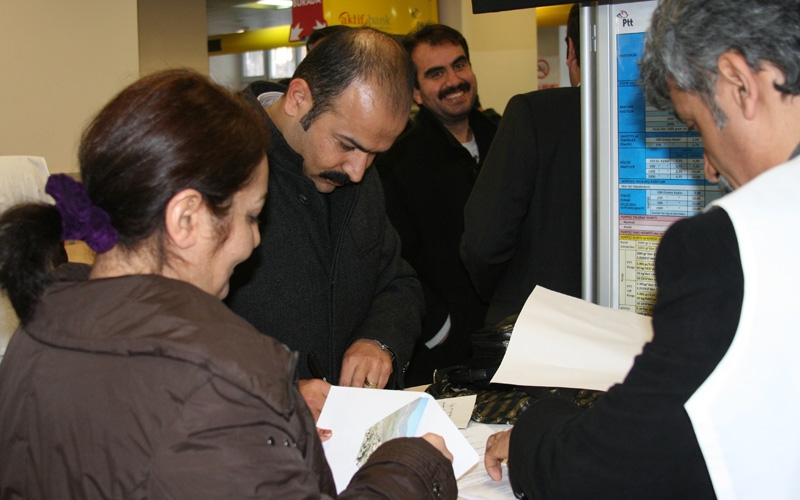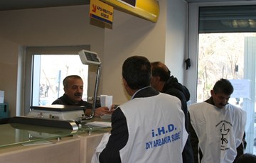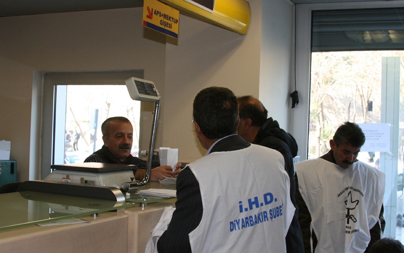 Yapılan konuşmaların ardından eyleme katılanlar, postaneye girerek, cezaevinde bulunan çok sayıda insan hakları savunucuları ve Kürt siyasetçilerine kart gönderdi.