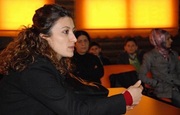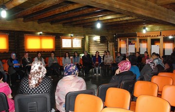Kadınlara Medeni Kanun ve ceza yasası konularında bilgilendirme yapan Dalkuş, velayet, boşanma sonrası mal paylaşımı, hangi durumda boşanma davası açılabildiği, vekalet ve nafaka gibi konular hakkında dava süreçlerini ve yargı süreçlerini aktardı.