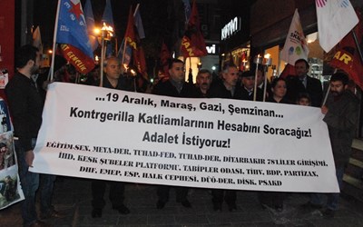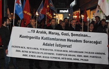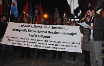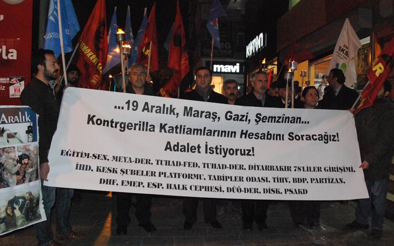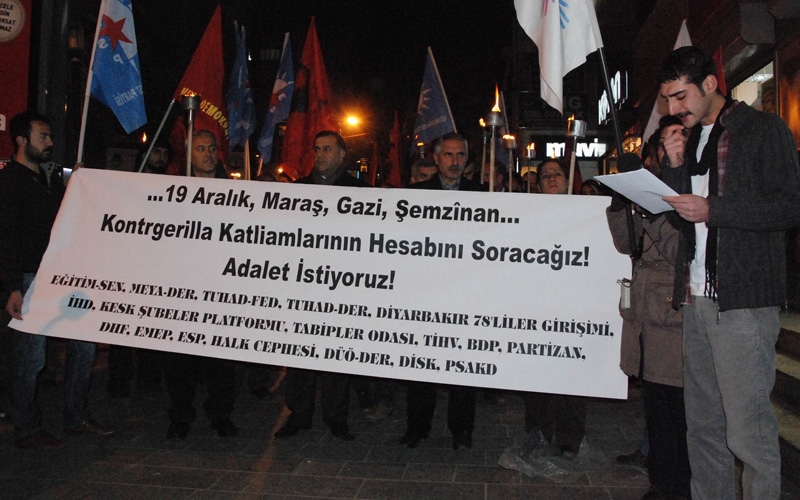 İHD, Eğitim-Sen, TUHAD-FED, Diyarbakır 78'liler Girişimi, KESK Diyarbakır Şubeler Platformu, Tabipler Odası, DİSK, TİHV, Partizan, DHF, EMEP, ESP, Halk Cephesi, DÜÖ-DER, PSAKD gibi çok sayıda siyasi parti, emek, meslek ve demokratik kitle örgütü üyeleri, 19 Aralık Katliamı’nı Diyarbakır’da protesto etti.