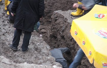 DİYARBAKIR - Diyarbakır'da Merkez Kapalı Cezaevi ve JİTEM merkezi olarak kullanılan bölgede yapılan restorasyon çalışmalarında toplu mezar bulundu. Olay yerinde inceleme yapan savcı da toplu mezar olduğunu belirtirken, İHD Diyarbakır Şube Sekreteri Raci Bilici, daha geniş bir inceleme yapılması için resmi girişimde bulunacaklarını söyledi.