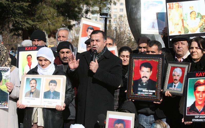 Oturma eylemi öncesi bir konuşma yapan İHD Diyarbakır Şube Sekreteri Raci Bilici, Şırnak ve Diyarbakır'da yapılan kazılara dikkat çekerek, o dönemlerde insanlık suçlarının işlendiğini ve bu suçu işleyenlerin belli olduğunu söyledi. Hükümetin faillerin yargılanması için samimi bir tutum sergilemediğini aktaran Bilici, faillerin bulunması için çaba sarf eden sivil toplum örgütlerine ise operasyonlar düzenlenerek, insan hakları savunucularının tutuklandığını kaydetti. Faillerin yargılanması için hükümetin hiçbir adım atmadığını belirten Bilici, " Kaybedilenlerin, faili meçhul cinayetler sonucu öldürülenlerin failler yargılansaydı, Roboski katliamı da yaşanmazdı" dedi. Bilici, kaybedilen insanların bulunması için mücadele edeceklerini sözlerine ekledi.
