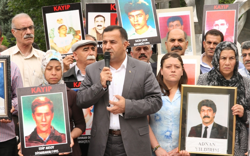 DİYARBAKIR - İHD ve kayıp yakınlarının "Kayıplar bulunsun failler yargılansın" sloganıyla her hafta düzenlediği oturma eylemi bu hafta Anneler Günü nedeniyle kayıp ve faili meçhul annelerine adandı. Eylemde konuşan İHD Diyarbakır Şube Başkanı Raci Bilici, bu ülkede annelerin artık acıya doyduğunu belirterek, “Bir taraftan savaş ve ölümler devam ederken, bir taraftan yeni Anayasa yazıyoruz diyemezsiniz. Analara vereceğiniz en büyük hediye bu savaşı durdurmak olacaktır” diye konuştu.