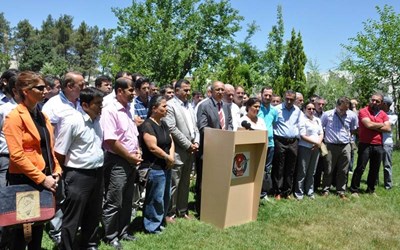 Diyarbakır'da bulunan 169 sivil toplum kuruluşu Başbakan Recep Tayip Erdoğan'ın yarın Diyarbakır'a gelişi ile ilgili Güneydoğu Gazeteciler Cemiyeti'nin önünde basın açıklaması yaptı. Aralarında İHD, Baro, MAZLUMDER, KESK’e bağlı sendikalar, meslek kuruluşları ve işveren kurumlarının bulunduğu 169 kurum adına Başbakan'a çağrıda bulunan Diyarbakır Barosu başkanı Mehmet Emin Aktar, "Türkiye ve bölge kamuoyu Diyarbakır'a önceki tarihlerdeki gelişlerinize önem ve anlam yüklemekteydi. Ancak bu gelişinize kamuoyunun önem ve anlam yükleme koşullarından uzak olduğunu söylemeliyiz" dedi.