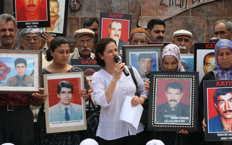 Kayıpların ve faili meçhul cinayetlerde yaşamını yitirenlerin fotoğraflarının taşındığı eylemde konuşan İHD Kayıp ve Faili Meçhul Cinayetler Komisyonu Üyesi Necibe Güneş Perinçek, dün Diyarbakır'da görülen JİTEM davasını hatırlatarak, “Bundan bir süre önce JİTEM davasına giren avukatlar, bundan sonraki süreçte davada yargılananların tahliye edilebileceği yönündeki kaygılarını belirtmişlerdi. Nitekim öyle de oldu. Davada dün bir JİTEM elemanı tahliye edildi. Biz faillerin bulunmasını beklerken yargılanan failler de serbest bırakılıyor. Her seferinde biz hayal kırıklığı yaşıyoruz” dedi.