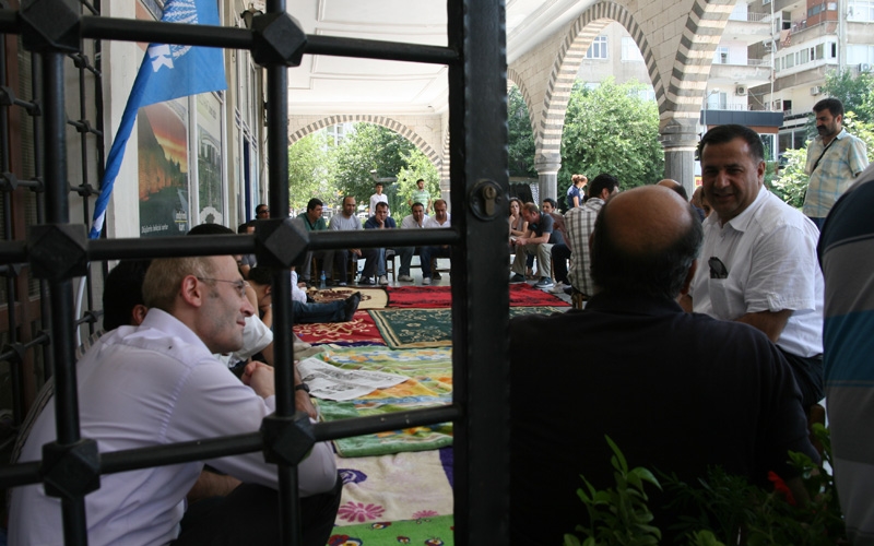 Dün Türkiye geneli yapılan kapsamlı bir operasyonla onlarca üyesi gözaltına alınan KESK’e destekler sürüyor. Yapılan operasyonları protesto etmek amacıyla dün akşamdan bu yana Diyarbakır Büyükşehir Belediyesi Konukevi önünde oturma eylemi yapan KESK üyeleri İHD Diyarbakır Şube yöneticileri tarafından ziyaret edildi. Şube Başkanı Raci Bilici ve İHD yöneticileri oturma eylemini sürdüren KESK’lilere dayanışma dileklerini iletti. KESK üyeleriyle bir süre oturma eylemini sürdüren İHD’liler yapılan operasyonları da kınadıklarını belirttiler.