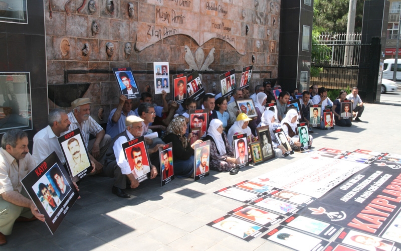DİYARBAKIR – İHD Diyarbakır Şubesi ve kayıp yakınlarının "Kayıplar bulunsun failler yargılansın" sloganıyla düzenlediği oturma eyleminde konuşan İHD Diyarbakır Şube Başkanı Raci Bilici, 2009’dan bu yana 166 kez toplantı ve gösterilen yasaklandığını açıklayarak, “Buradan yeniden çağrı yapıyoruz. Daha miting saatine epey zaman var, hiçbir şey için geç değil, bu yasağa bir son verin. Gelin bu eski yöntemlerinizden vazgeçin. Halkın haklı talepleri önündeki engelleri kaldırın” dedi.