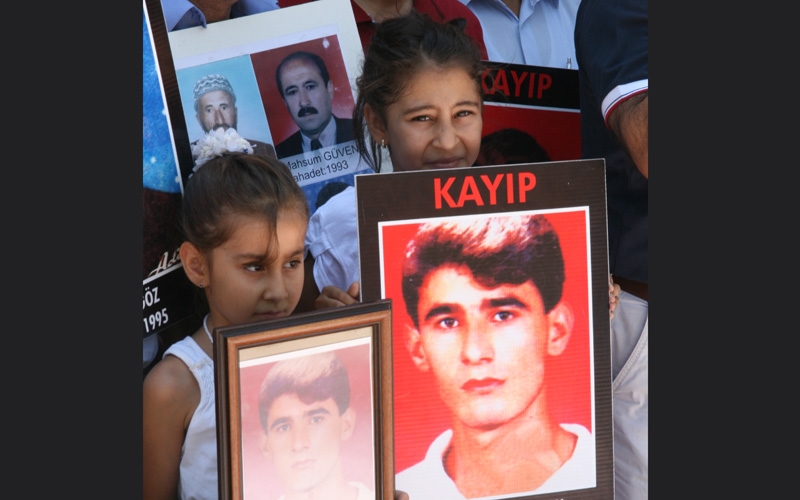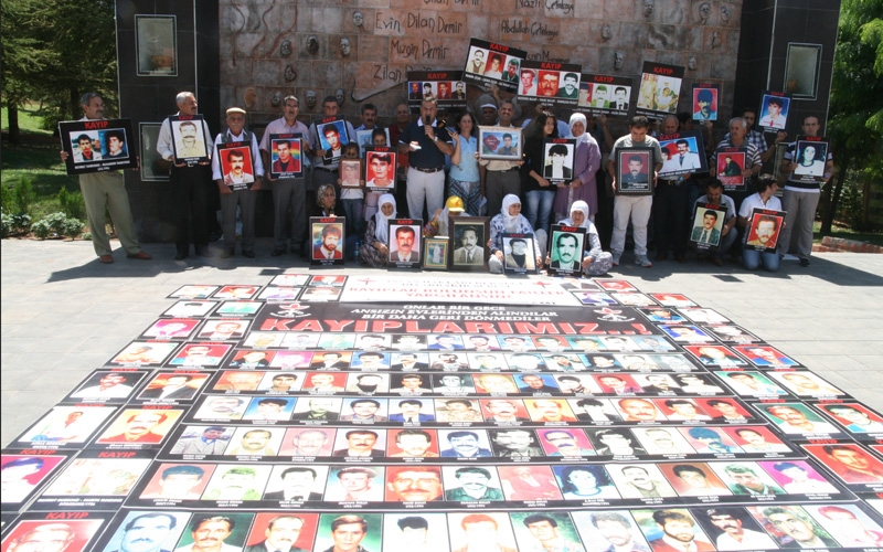 Kayıpların ve faili meçhullere kurban gidenlerin fotoğraflarının taşındığı eylemde, İHD tarafından hazırlanan ve üzerinde 125 kaybın fotoğrafı ile “Onlar bir gece ansızın evlerinden alındılar, bir daha geri dönmediler: KAYIPLARIMIZ!” yazılı büyük bir pankart açıldı.
