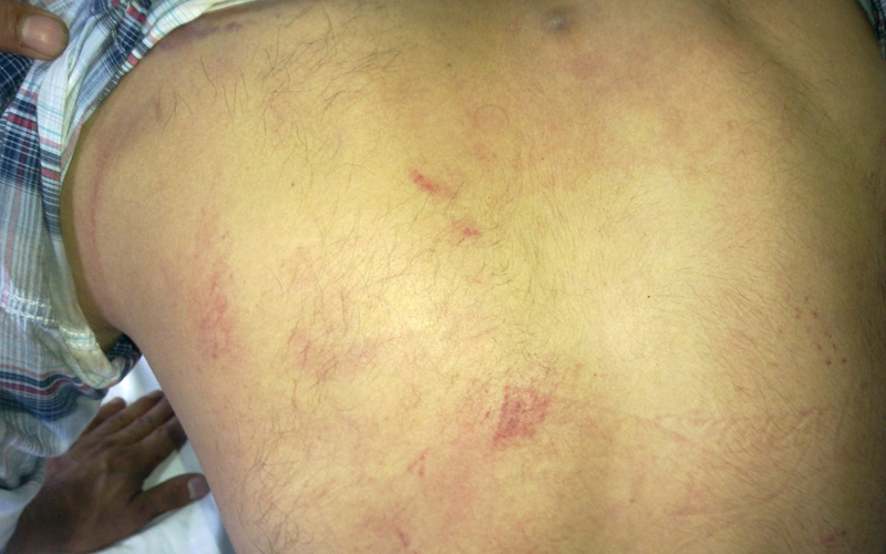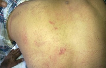 Diyarbakır’da 14 Temmuz günü yaşanan olaylarda polisin uyguladığı şiddet, gözaltına alınan gençlerden Remzi Akkaya’nın ortaya çıkan fotoğraflarında net bir şekilde görülüyor. Ofis Semti Gevran Caddesi’nde göstericilere sert bir şekilde müdahale eden polis, gençlerden Remzi Akkaya’ya sokak ortasında işkence yaparak gözaltına almıştı. Fenalaşması üzerine Devlet Hastanesi’ne kaldırılan Akkaya’ya yönelik işkence burada da sivil polisler tarafından sürdürüldü. Acil Servis’teki polis odasına alınan Akkaya, dakikalarca burada polisin şiddetine maruz kaldı. Akkaya gördüğü işkence sonucu bayılması üzerine Acil Servis’te müşahede altına alındı. Akkaya, burada tedavi edildikten sonra polis tarafından gözaltına alındı. Akkaya’nın gördüğü işkenceleri net bir şekilde gösteren fotoğraflar söze gerek bırakmıyor.