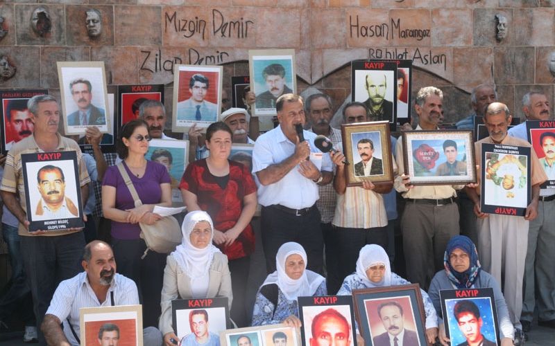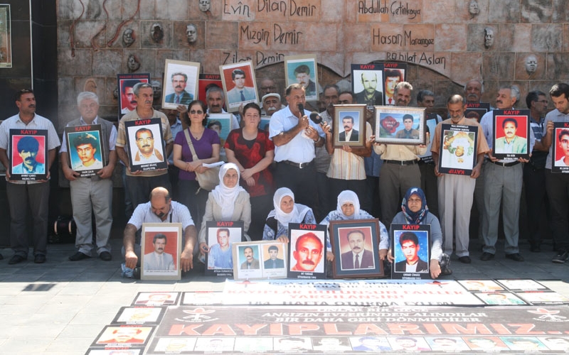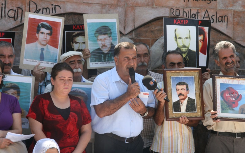 Oturma eyleminde konuşan İHD Diyarbakır Şube Başkanı Raci Bilici, bayramda insanların yaşamını yitiren yakınlarının mezarını ziyaret ettiğini belirterek, “Ama maalesef kayıp yakınlarının ziyaret edecekleri bir mezarları dahi yoktur. Biz yıllardır kayıpların bulunması için, faillerinin yargılanması için mücadele ettik. Ancak bugüne kadar bir sonuç elde edemedik” dedi.