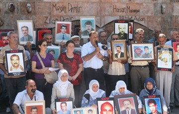 DİYARBAKIR - İHD Diyarbakır Şubesi ve kayıp yakınları tarafından "Kayıplar bulunsun, failler yargılansın" sloganıyla düzenlenen oturma eyleminde konuşan İHD Diyarbakır Şube Başkanı Raci Bilici, bayramda insanların ölülerinin mezarını ziyaret ettiğini belirterek, “Ancak kayıp yakınlarının ziyaret edecekleri bir mezarları dahi yok. Geçmişteki iktidarlar gibi bu iktidar da kayıpları ortaya çıkarmak istemiyor” dedi.