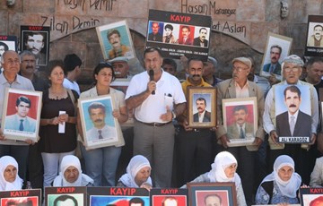 DİYARBAKIR - İHD Diyarbakır Şubesi ve kayıp yakınlarının “Kayıplar Bulunsun Failler Yargılansın” sloganıyla her hafta düzenlediği oturma eyleminde konuşan İHD Diyarbakır Şube Başkanı Raci Bilici, hükümet yetkilileri ve medyaya çağrı yaparak, “Her gün ekranlara çıkıp nasıl savaşı tırmandıracağınızı konuşacağınıza, çıkıp bu savaşı nasıl sona erdirebileceğimizi anlatın. Halkı kin ve düşmanlığa sevk etmekten vazgeçin” dedi.