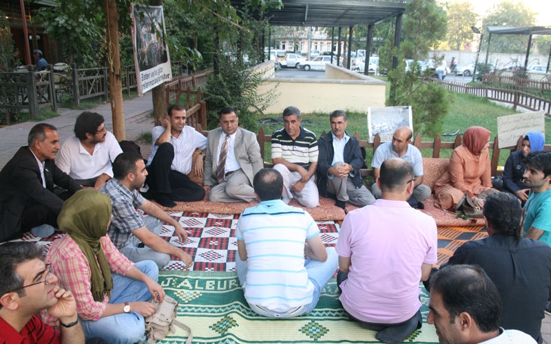 İHD Diyarbakır Şubesi yöneticileri, MAZLUMDER Diyarbakır Şubesi tarafından Ofis Sanat Sokağı'nda açılan “Roboski için adalet nöbeti” standını ziyaret etti. İHD Şube Başkanı Raci Bilici ve beraberindeki şube yöneticileri, adalet nöbetinde olan MAZLUMDER’liler tarafından karşılandı.