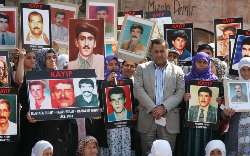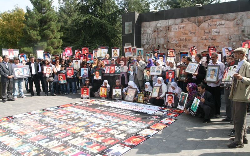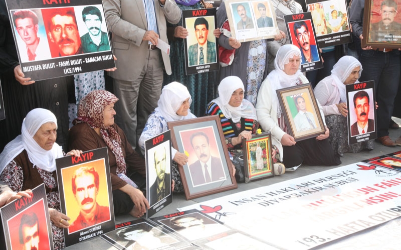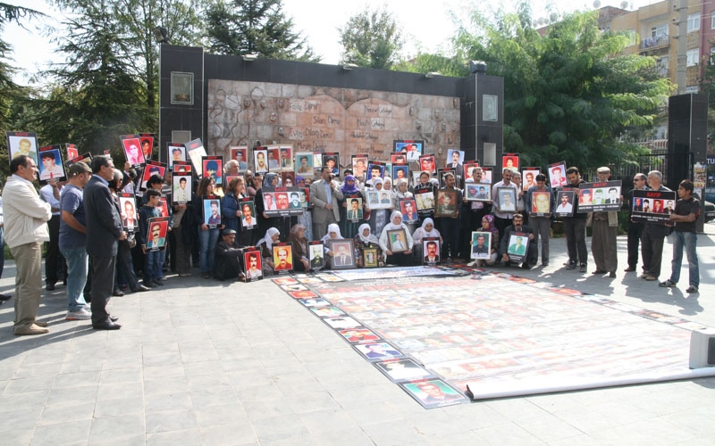 İHD Diyarbakır Şubesi ve kayıp yakınlarının “Kayıplar Bulunsun, Failler Yargılansın” sloganıyla her hafta düzenlediği oturma eylemi 193’üncü haftasında devam etti. Koşuyolu Parkı Yaşam Hakkı Anıtı önünde gerçekleştirilen ve her hafta olduğu gibi kaybedilen yakınlarının fotoğraflarını taşıyan kayıp yakınlarına İHD üye ve yöneticilerinin yanı sıra, Barış Anneleri İnisiyatifi, MEYA-DER, TUHAD-FED, Diyarbakır’da bulunan kadın kurumlarının temsilcileri ve KESK’e bağlı sendikaların temsilcileri de katılarak destek verdi.