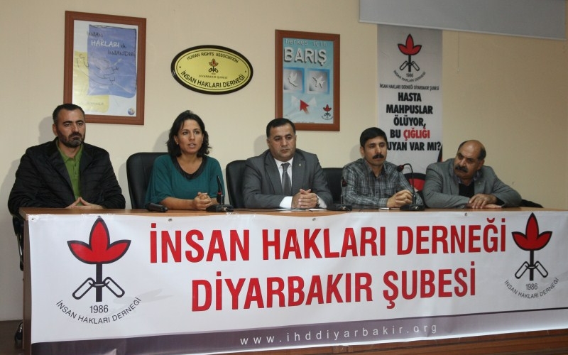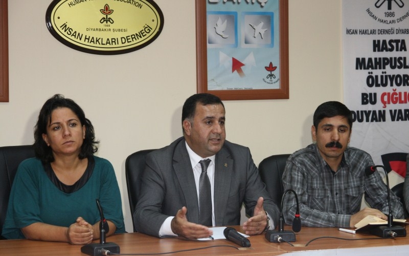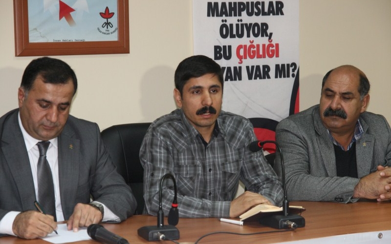 İlk konuşmayı yapan İHD Diyarbakır Şube Başkanı Raci Bilici, açlık grevinin 20’nci gününden itibaren cezaevlerini izlemeye aldıklarını hatırlattı. Meydana gelen sorunları tespit edip müdahale edebilme şanslarının olduğuna dikkat çeken Bilici, komisyonun bu doğrultuda planlı ve disiplinli şekilde tüm cezaevlerinde yaşanan sıkıntıların komisyon tarafından arşivlenerek bununla ilgili çözümler geliştirildiğini ifade etti. Bu anlamda komisyonun Türkiye’nin hemen her cezaevine ulaşabildiğini belirten Bilici, “Biz aynı zamanda yerelde sorunların çözülmesi için Baro aracılığı ile adli sorunları gidermeye çalıştık. Fakat 12 Eylül’den bu yana 63 siyasi biri adli 64 kişi açlık grevinde bulunmaktadır. Bunlar 63 gündür açlık grevinde bulunmakta. 53’ncü gününde olanlar 75 kişi, 40’ncı gününde bulunan 221 kişi, 30’ncu gününde bulunan 315 kişi var. Bunların durumu ağırdır. Sağlık sorunları da giderek ağırlaşıp kötüleşiyor. 18’nci gününde olan 16 kişi var 14’ncü gününde olan 8 kişi var. Ve 9 gündür de tüm cezaevlerinde siyasi mahpuslar açlık grevine girmiş bulunmaktadır. Fçlık grevine giren bu siyasi mahpusların talepleri karşılanabilecek taleplerdir. İnsani, meşru ve hukuki taleplerdir. Bu taleplere bu çerçevede yaklaşılması lazımdır. Çünkü bunların talepleri aynı zamanda ülkenin gündeminden şiddeti çıkaracaktır. Buna saygı gösterilmesi gerekmektedir” diye konuştu.