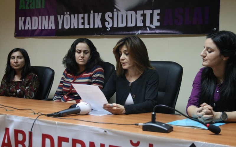 Yönetim kurulu üyesi Gülistan Gencer tarafından Kadın komisyonu adına okunan basın metninde “Bir ‘25 Kasım Kadına Yönelik Şiddetle Mücadele Haftası’ nedeniyle yine bir aradayız. Haftaya adını veren başlık bile aslında kadının hala ciddi şekilde ayrımcılığa maruz kaldığını ve büyük bedeller ödediğini anlatmaya yeterli. Tüm dünyada olduğu gibi, bu coğrafyada da kadınlar, erkek egemen sistemden ve “erkek aklının” ürünü olan politikalardan dolayı en fazla acı çeken ve bedel ödeyen kesim olmaya, 2012 yılında da devam etti” denildi. İnsan hakları Derneği olarak açıkladıkları raporların sadece sayılardan ibaret olmadığına vurgu yapan açıklamada “Bu rakamların her biri; tecavüze uğrayan, katledilen, berdel verilen, zorla evlendirilen, polis şiddetiyle içiçe siyaset yapan, demokratik muhalefet yaptığı için cezaevinde yıllarını geçiren, açlık grevlerine yatan kadınlardır. Sadece İHD Diyarbakır Şubesinin 2012 yılının ilk on aylık verileri dahi tablonun ne kadar vahim olduğunu ortaya koymaya yetmektedir. Buna göre, bölge illerinde 56 kadın ölmüş veya öldürülmüş, 45’i şiddet sonucu yaralanmış, 6’sı tecavüze uğramış, 10’u da cinsel tacize maruz kalmıştır. Gerçek sayının bunların çok üzerinde olduğunu biliyoruz. Ancak bunlar, tespit edebildiğimiz sayılardır” denildi.