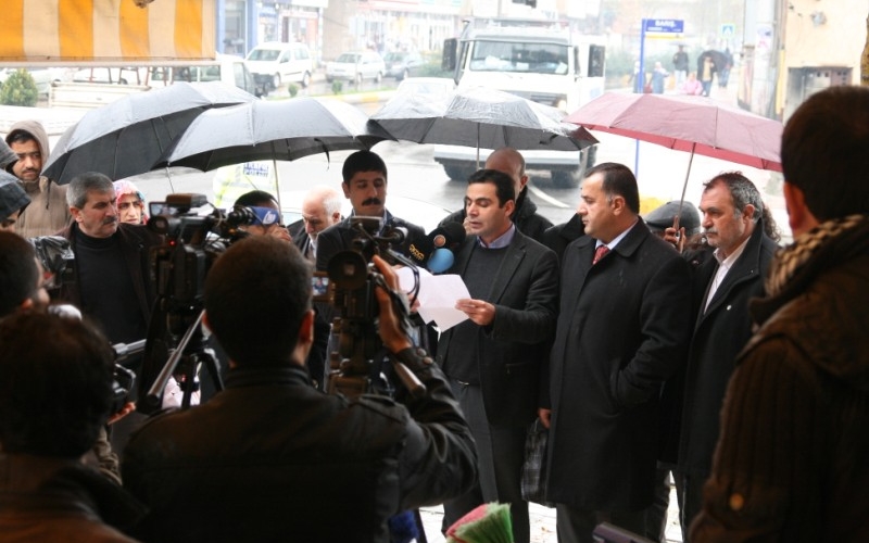 Diyarbakır’da İHD, MAZLUMDER, TİHV, Diyarbakır Barosu, Diyarbakır Tabip Odası ve STGM tarafından organize edilen 10-17 Aralık İnsan Hakları Haftası etkinlikleri bugün de, cezaevlerinde yaşanan hak ihlallerine dikkat çekmek amacıyla E Tipi Kapalı Cezaevi önünde bir basın açıklamasıyla devam etti.  Yağmur altında gerçekleşen basın açılmasına insan hakları örgütlerinin yönetici ve üyelerinin katıldığı görülürken, 6 kurum adına açıklamayı okuyan Mazlum-Der Şube Sekreteri Nurettin Bozkurt  okudu. “İnsana hizmet temelinde bina edilmeyen devletler ve yönetimlerin yol açtığı trajedi bu günde en büyük sorun olarak varlığını korumaktadır” denilerek başlanan açıklamada, 2012 yılının ilk 9 ayında cezaevlerinde yaşanan ihlallerin 3014 olduğu belirtildi.