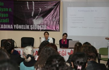 Av. Reyhan Yalçındağ Baydemir ise, kadın haklarını hukuki açısından değerlendirdi. Anayasaya göre şiddete maruz kalmış kişi gerekli bulunması hâlinde, tedbir kararı ile birlikte talep üzerine veya resen, korunan kişi ve diğer aile bireylerinin kimlik bilgileri veya kimliğini ortaya çıkarabilecek bilgileri ve adresleri ile korumanın etkinliği bakımından önem taşıyan diğer bilgilerin tüm resmi kayıtlarda gizli tutulduğunu dile getiren Yalçındağ, "Yapılacak tebligatlara ilişkin ayrı bir adres tespit edilir. Ama ne yazık ki bu yasada belirtilenler uygulamamaktadır" dedi. Yalçındağ, seminere katılan kadınların AKP'nin kadın hakları üzerindeki politikalarına ilişkin sorularını da yanıtladı. Hükümetin politikalarını eleştiren Yalçındağ, hükümet ve Başbakan'ın her şeyin tek millet, tek devlet, tek dil ve son zamanlarda tek dini de içine alarak önünü kestiğini söyledi. Bununla birlikte eril bir zihniyet ortaya çıktığını söyleyen Yalçındağ, "Hal böyle olunca tabi ki, devlet eşittir erkek zihniyeti, karşısında kadın şiddet görür" dedi.