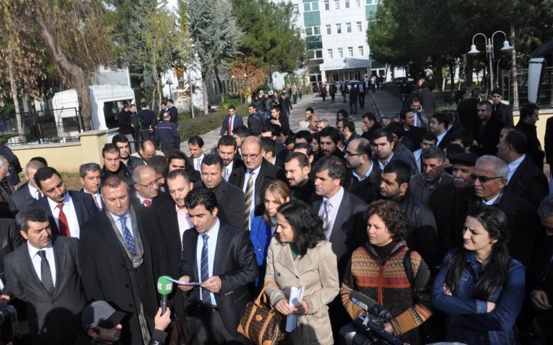 ‘Özel yargılama değil adil yargılama istiyoruz’ denilerek başlanan açıklamayı okuyan Diyarbakır Barosu Başkan Yardımcısı Nahit Eren “ Özel yargılama usullerine ilişkin yapılan CMK’nın 250 ve devam maddeleri TMK’ya taşınarak ‘reform’ adıyla kamuoyuna sunulmuştur. Reform olarak sunulan bu değişiklik ile yargı, yürütmeye daha fazla bağımlı hale getirilerek, muhalif olana özel yargılama usulu pekiştirilmiştir. Unutmayalım ki hükümeti, bu değişikliği yapmaya yöneltenetkenin, özel yetkili savcıların ve mahkemelerin kendi siyasal kararlarının soruşturmaya başlamış olmasıydı” dedi.