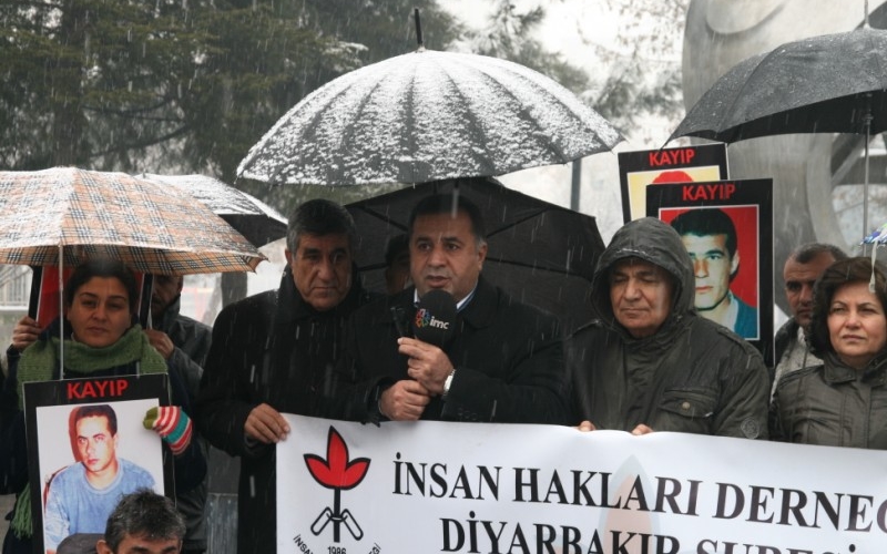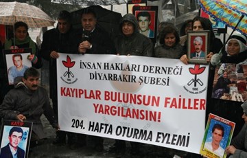DİYARBAKIR – İHD Diyarbakır Şubesi ve kayıp yakınları tarafından 204'üncü kez düzenlenen oturma eyleminde kayıp yakınları yağan yoğun kar yağışına aldırış etmeden kayıplarının akıbetini sordu. Burada konuşan İHD Şube Başkanı Raci Bilici, Kürt sorununun demokratik çözümü için hükümetin askeri ve siyasi operasyonları sonlandırması gerektiğine dikkat çekti.