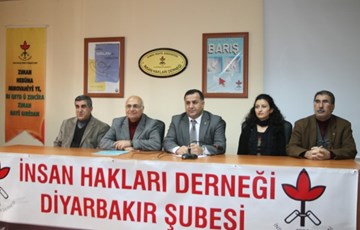 İHD Diyarbakır Şubesi, Doğu ve Güneydoğu Anadolu Bölgesi 2012 yılı İnsan Hakları İhlalleri Raporu’nu düzenlediği bir basın toplantısıyla kamuoyuna duyurdu. Şube binasında düzenlenen basın toplantısına İHD MYK Üyesi ve Doğu-Güneydoğu Anadolu Bölge Temsilcisi Şevket Akdemir, İHD Diyarbakır Şube Başkanı Raci Bilici, Şube Sekreteri Abdusselam İnceören, ile şube yöneticileri Emin Ermin ile Av. Pınar Dalkuş katıldı.