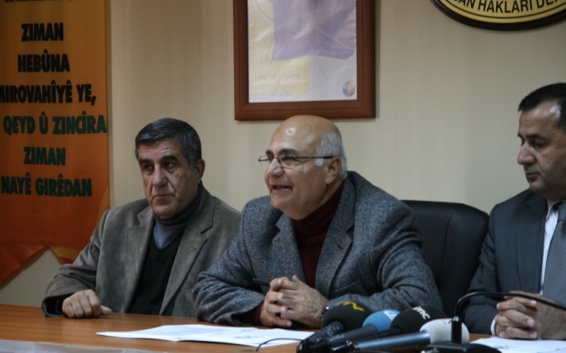Raporun açıklanması öncesi hazırlanan basın metnini okuyan Şube Başkanı Raci Bilici, Kürt meselesinin tartışıldığı bir ortamda açıkladıkları raporda yine iç açıcı veriler sunamadıklarını belirterek, “Geride bıraktığımız yıl yine binlerce ihlale sahne olmuştur. Bugün tartışılan ve müzakere edildiği ileri sürülen Kürt meselesinin çözümsüzlüğü nedeniyle geçtiğimiz yıl yine kayıp bir yıl oldu. Oysa ki, bugün tartışılanları geçtiğimiz bir yıl içerisinde tartışıp sonuca bağlamış olsaydık, bugün bunca ihlalden söz etmiyor olabilirdik. Ama bu gerçekleşmedi ve yine kan, gözyaşı, acı ve ihlaller bu coğrafyadan eksik olmadı” dedi.