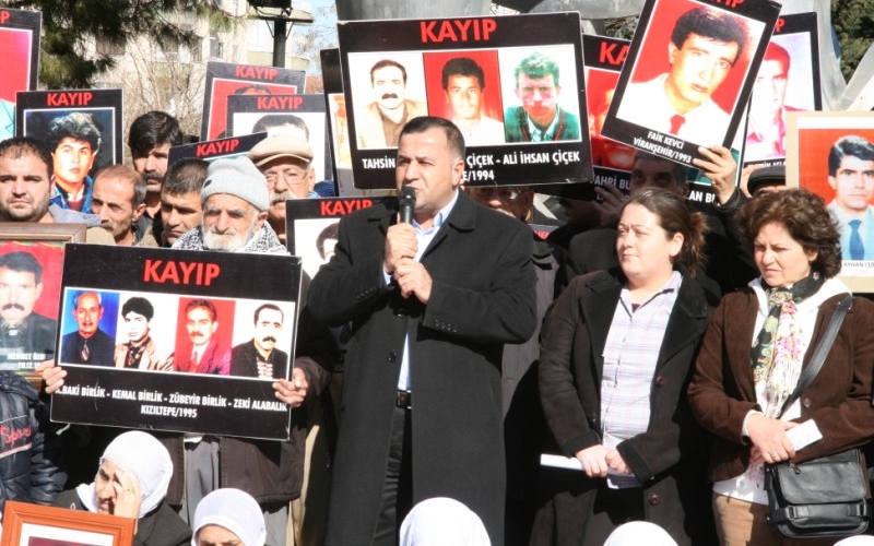 Oturma eyleminde ilk olarak konuşan İHD Diyarbakır Şube Başkanı Raci Bilici, tam 208 haftadır kayıpların bulunması, faillerinin yargılanması için mücadele ettiklerini belirterek, “Yıllardır bu alanlarda bu kayıpların, faili meçhul cinayetlerin faillerini dile getiriyoruz. Aynı zamanda savcılıklara bunlar hakkında suç duyurusunda bulunuyoruz. Ama maalesef bugüne kadar en ufak bir adım atılmış değildir. Bu siyasal cinayetlerin hepsi devletin bilgisi dahilinde işlenmiş cinayetlerdir ve devletin arşivinde tüm bu bilgi-belgeler bulunmaktadır. Eğer devlet istese bu failleri ortaya çıkarabilir. İşte bugünler bunun tam zamanıdır. Böylesi bir girişim belki de başlayan yeni sürece pozitif bir katkı sunar” dedi.