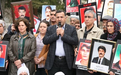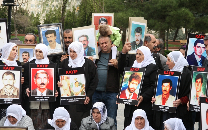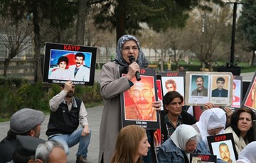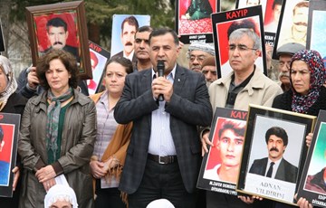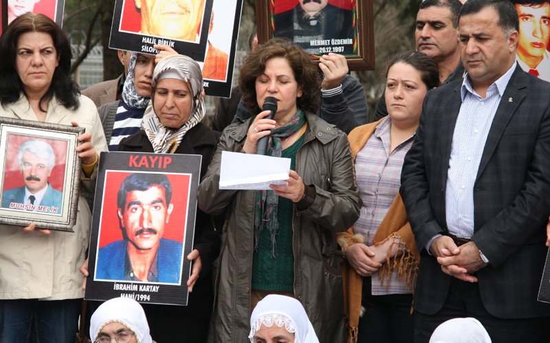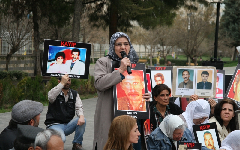 DİYARBAKIR- iHD ve Kayıp yakınlarının “Kayıplar bulunsun Failler Yargılansın” sloganı ile her hafta düzenlediği oturma eyleminin 214.’cüsü gerçekleştirildi. Eylemde İHD Diyarbakır Şube Başkanı Raci Bilici “Çözüm için bir barış atmosferinin oluşması, bir barış rüzgarının esmesi gerekir. Hükümetin acilen adım atmasını talep ediyoruz” dedi.