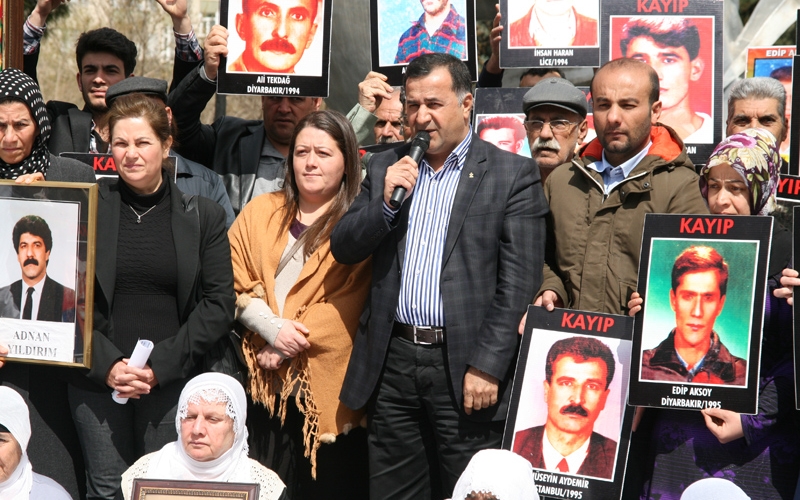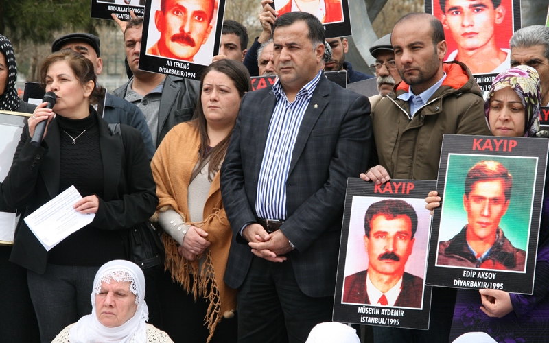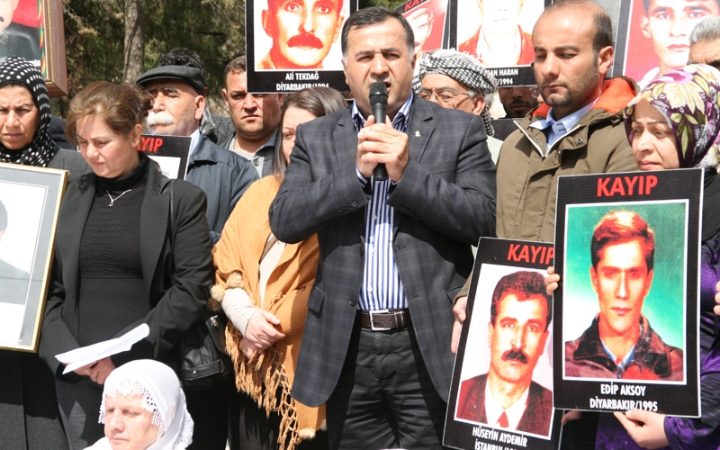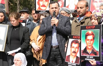 DİYARBAKIR- İHD ve Kayıp Yakınlarının “Kayıplar Bulunsun Failler yargılansın” sloganı ile düzenlediği oturma eyleminin 215.’si gerçekleştirildi. Eylemde bir konuşmada bulunan İHD Diyarbakır Şube Başkanı Raci Bilici “Bu sürece yönelik samimiyet göstergelerinden birisi de, kayıpların bulunması ve faillerin yargılanmasıdır. Bu, sürece olan inancımızı ve güvenimizi arttırır” dedi.