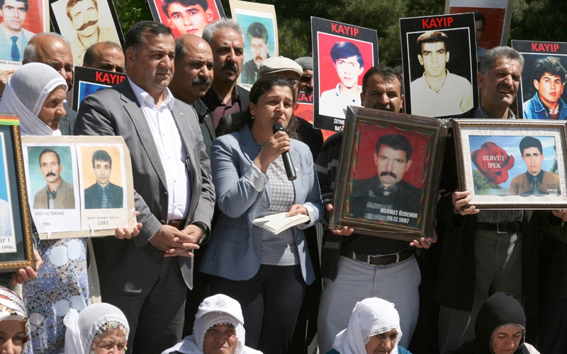 Ardından konuşan SES Diyarbakır Şube Başkanı Hülya Uyanık Alökmen ise, kayıp ve faili meçhul cinayet sonucu yaşamını yitiren sağlık emekçilerinin isimlerini anarak konuşmasına başladı. Alökmen "Şeyhmus Akıncı, Mehmet Emin Ayhan, Zeki Tanrıkulu, Necati Aydın, Veysi Sızlanan, Hamit Pamuk, İkram Damlayıcı. Burada bulunan fotoğraflardaki insanlar gibi kaybedilen, katledilen sağlık emekçileridir. Ya sokak ortasında katledildiler. Ya sürgün edildikleri Çankırı gibi illerde kimliği belirsiz kişiler tarafından katledildiler. Ya da o dönemlerde Necati Aydın arkadaşımız gibi kaçırılarak öldürüldüler. Necati Aydın, arkadaşımız gözaltından çıkarıldığı DGM'den serbest bırakılır. DGM'nin arka kapısından bir arkadaşı ile birlikte kaçırılır ve 10 Nisan'da Silvan'da cenazesi bulunur. Bu arkadaşlarımız SES üyesiydiler. Emek mücadelesi veriyorlardı ve Kürttüler! Bu yüzden bedel ödediler. Geçen 20 yılda onların mücadelesini, bize bıraktıkları bayrağı dalgalandırma sözü vermiştik. Bundan sonra da devam edeceğiz" dedi.