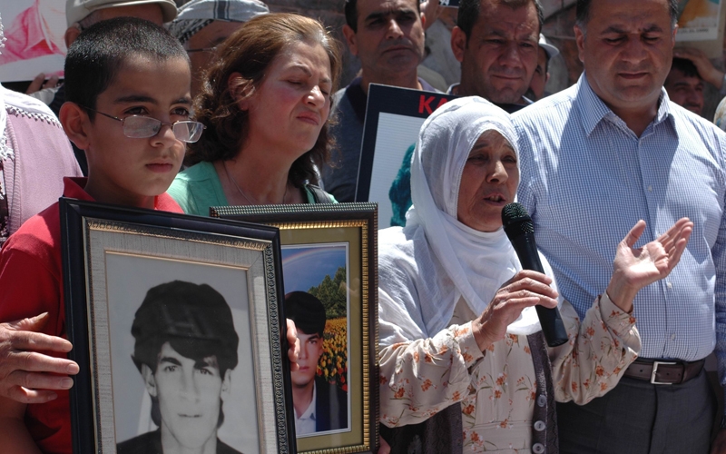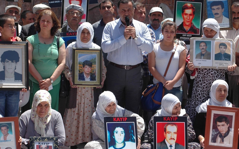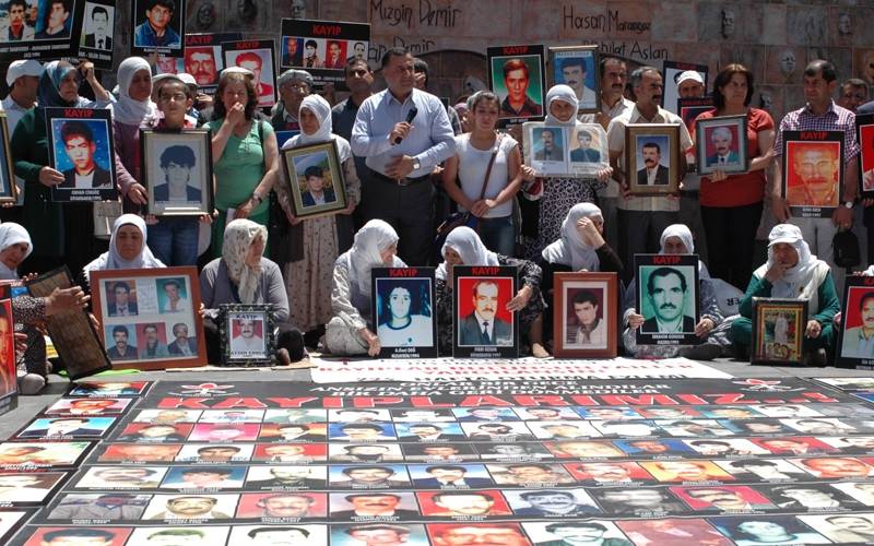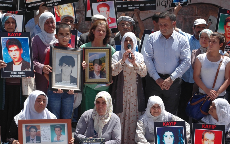İHD Diyarbakır Şubesi ve kayıp yakınları, "Kayıplar Bulunsun, Failler Yargılansın" sloganıyla her hafta Koşuyolu Parkı Yaşam Hakkı Anıtı önünde düzenlendiği oturma eyleminin 225. haftasını geride bıraktı. KESK Diyarbakır Şubeler Platformu, MEYADER ve Barış Anneleri İnisiyatifi aktivistlerinin destek verdiği eylemde, bu hafta Lice'de 1994'te askerler tarafından gözaltına alındıktan sonra katledilen Edip Tanrıverdi'nin akıbeti soruldu. Kayıp hikayesi anlatılmadan önce konuşan İHD Diyarbakır Şube Başkanı Raci Bilici, PKK Lideri Abdullah Öcalan tarafından başlatılan sürece dikkat çekerek, "Onurlu bir barış gelecekse kayıpların failleri yargılanmalı, toplu mezarlar açığa çıkartılarak bu gerçeklerle yüzleşilmelidir" dedi. Bilici, Taksim Gezi Parkı'nda günlerdir süren polis müdahalesine de değinerek, orantısız polis şiddetini kınadı.
