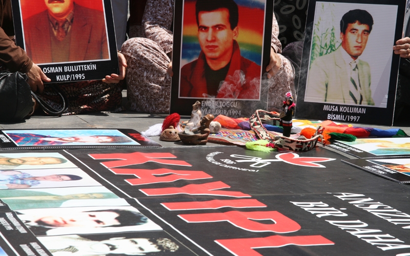 DİYARBAKIR – Kayıp yakınları Diyarbakır, Batman ve Nusaybin'de kayıpların bulunmasını ve faillerinin yargılanmasını istedi. Kayıp yakınları ve insan hakları savunucularının Diyarbakır’daki eylemine destek veren Latin Amerikalı kadınlar, kayıplar için tütsü yaktı.