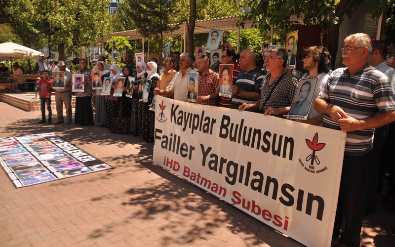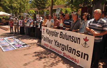 İHD Batman Şubesi üyeleri ile kayıp yakınları tarafından Gülistan Caddesi'nde her hafta kayıplar için gerçekleştirilen eylem bu hafta da gerçekleştirildi. 1990'lı yılarda kaybedilenlerin fotoğraflarının bulunduğu "Kaybedilenler" ile "Kayıplar bulunsun failleri yargılansın" pankartının açıldığı eyleme kayıp yakınları, İHD yönetici ve üyeleri, Barış Anneleri İnisiyatifi aktivistleri, BDP, KURDÎ-DER ve MEYADER yöneticileri ve STK temsilcilerinin yanı sıra çok sayıda yurttaş katıldı. Kayıpların ve gözaltında yaşamlarını yitirenlerin fotoğraflarının taşındığı eylemde konuşan İHD Batman Şube Başkanı Osman Künteş, bölgede kaybedilenlerin faillerinin bir an önce yargı önüne çıkarılması gerektiğini belirterek, bölgede bulunan binlerce toplu mezarın açılmasını istedi. PKK Lideri Abdullah Öcalan tarafından başlatılan sürece dikkat çeken Künteş, şimdiye kadar bu çözüm ve barış için mücadele ettiklerini bundan sonra tek umutlarının kalıcı bir barışın sağlanması olduğunu dile getirdi. Ramazan ayının başlamasıyla ve sıcaklıkların artması nedeniyle eylemlerine bir ay ara vereceklerini söyleyen Künteş, bir ay sonra tekrar bu alanda olacaklarını dile getirdi.