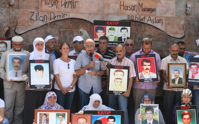 Açıklama öncesinde konuşan İHD Bölge Temsilcisi Şevket Akdemir, 90'lı yıllardan bu yana gözaltında kaybedilen ve "faili meçhul" cinayete kurban giden binlerce insanın faillerinin kimler olduğunun bilinmesine ve delillerin ortada olmasına rağmen yargının görevini yerine getirmediğini belirterek, "Bir dönem JİTEM'de aktif çalışan itirafçı Abdulkadir Aygan, itiraflarında kayıpların isimlerini, gömüldükleri yerleri açıkça ortaya koymasına rağmen, kayıpların bulunmak istenmemesine yönelik kanaatimiz gittikçe artmaktadır. Gözaltında kaybedilenlerin failleri aramızda dolaşıyor. Hukuk devleti gereğini yapmak zorundadır. Ergenekon soruşturması Fırat'ın doğusuna geçmelidir" dedi.