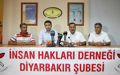 İHD Diyarbakır Şubesi, Doğu ve Güneydoğu Anadolu Bölgesi 2013 yılı ilk 6 ay İnsan Hakları İhlalleri Raporu’nu düzenlediği bir basın toplantısıyla kamuoyuna duyurdu. Şube binasında düzenlenen basın toplantısına İHD Genel Başkan Yardımcısı Av. Serdar Çelebi, Diyarbakır Şube Başkanı Raci Bilici, Şube Sekreteri Abdusselam İnceören, ile şube yöneticsi Emin Ermin katıldı.