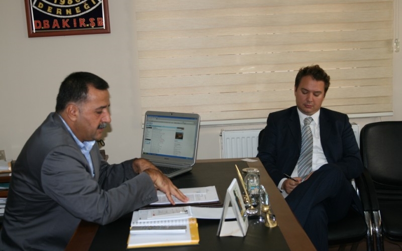 ABD Adana Siyasi ve Ekonomik İşler Sorumlusu İkinci Konsolosu J. M. ABD Adana İkinci Konsolosu J. M. Saxton-Ruiz,, Diyarbakır’daki temasları çerçevesinde İHD Diyarbakır Şubesi’ni ziyaret etti. Şube Başkanı Raci Bilici ve Şube Sekreteri Abdusselam İnceören tarafından ağırlanan ABD’li konsolos, Türkiye’ye yeni atandığını, bu nedenle bölgede bazı temaslarda bulunduğunu söyledi. İnsan Hakları Derneği’ni tanımak ve bölgede yaşanan hak ihlallerine ilişkin bilgi almak istediğini belirten Saxton-Ruiz, yaşanan gelişmeleri yakından takip ettiklerini belirtti.