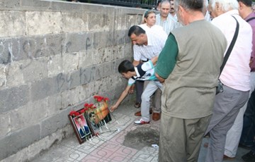 Konuşmaların ardından anmaya katılanlar, patlamanın yaşandığı yere karanfil bıraktı.