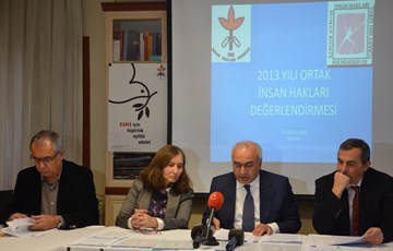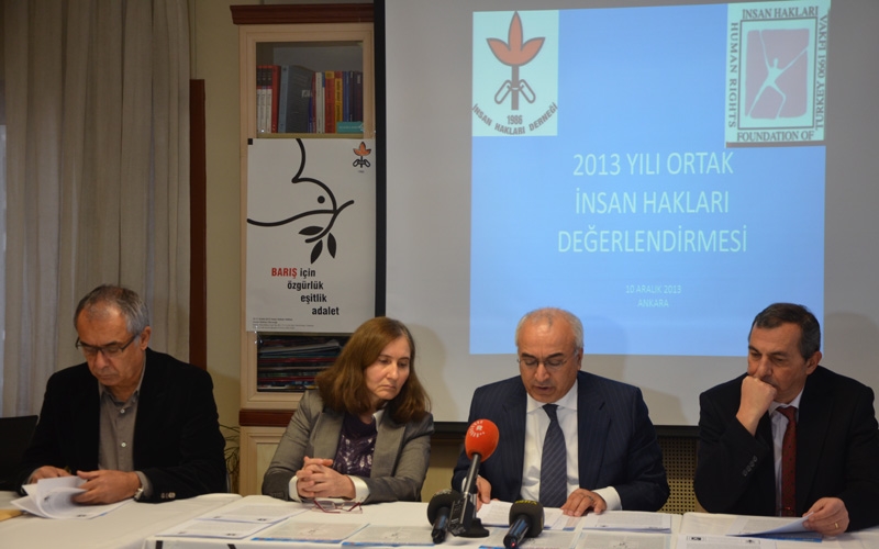 İnsan Hakları Derneği (İHD) ve Türkiye İnsan Hakları Vakfı (TİHV) genel merkezleri, 10 Aralık Dünya İnsan Hakları Günü ve Haftası'nda insan hakları alanında karşılaşılan ihlaller konusunda Türkiye'nin 2013 karnesini açıkladı. İHD Genel Merkez binasında yapılan basın toplantısına TİHV Genel Sekreteri Metin Bakkalcı, İHD Genel Başkanı Öztürk Türkdoğan, Uluslararası İnsan Hakları Federasyonu (FİDH) Genel Başkan Yardımcısı Yusuf Alataş ile İHD Akademi Başkanı Hüsnü Öndül katıldı. Hazırlanan ortak açıklamayı yapan İHD Genel Başkanı Öztürk Türkdoğan, İnsan Hakları Evrensel Bildirge'sinin kabul edilişinin 65. yıl dönümünde insan hakları değerleri için halklar ve toplumlar tarafından direnme hakkının kullanılarak etkili mücadeleler yürütülmeye devam ettiğini söyledi.