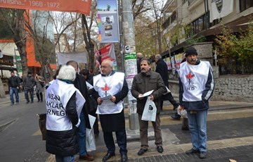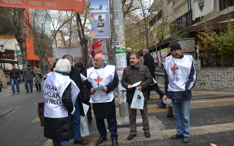 Öte yandan İHD yöneticileri İnsan Hakları haftası nedeniyle Yüksel Caddesi İnsan Hakları Anıtı önünde bildiri dağıttı.