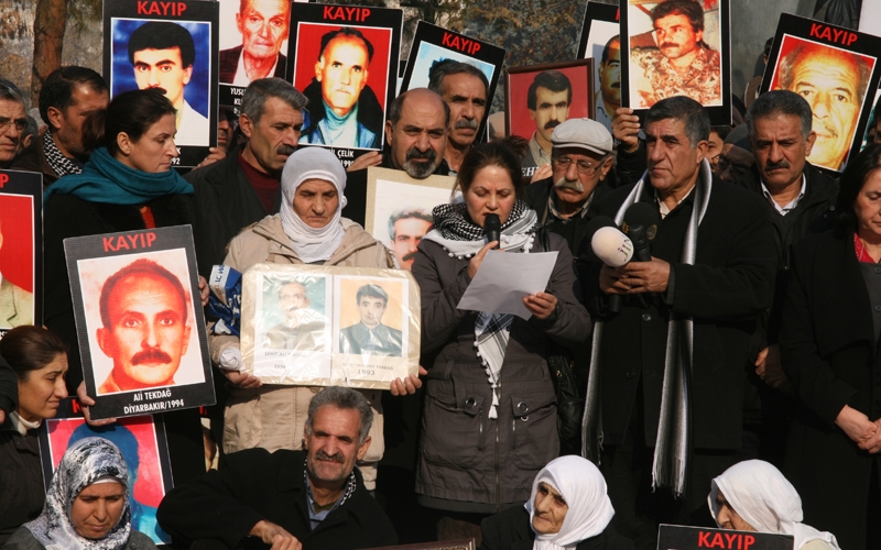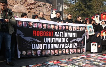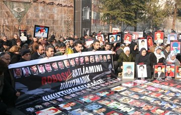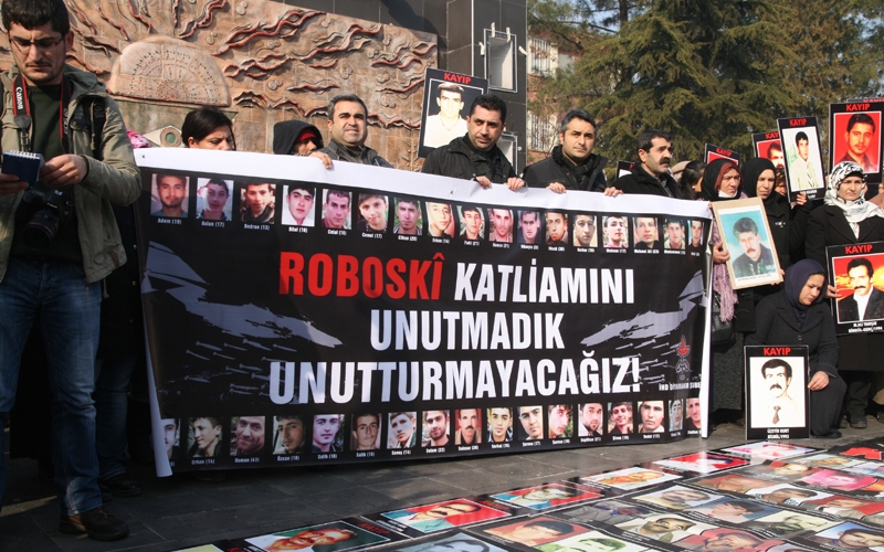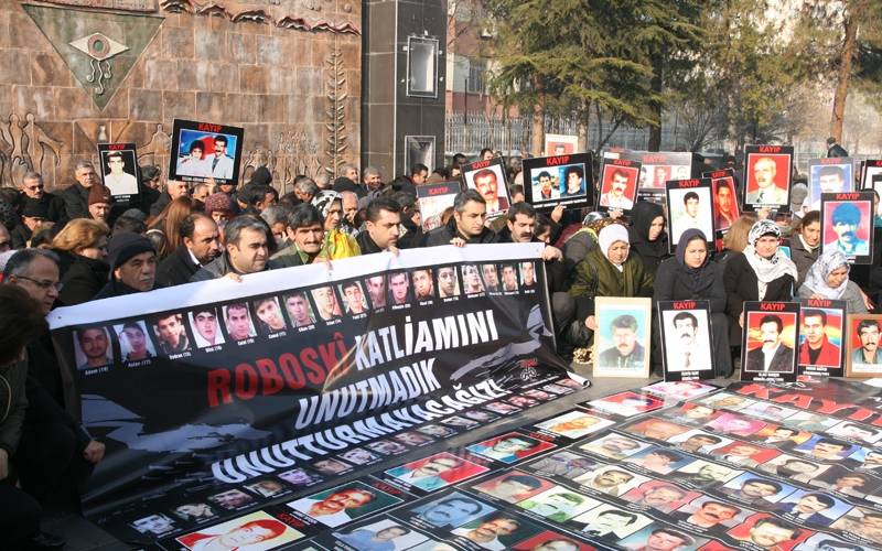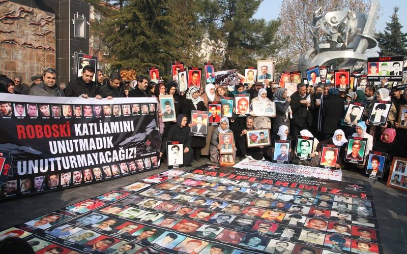 DİYARBAKIR- İHD Diyarbakır Şubesi ve kayıp yakınlarının her hafta “Kayıplar Bulunsun Failler Yargılansın” sloganı ile düzenlediği oturma eylemi 255’inci haftayı geride bıraktı. Bu haftaki eylemde, bu gün 2’inci yıldönümü olan ve faillerinin hala gizlendiği Roboski katliamı protesto edildi. Kayıp yakınları, binlerce faili meçhulde olduğu gibi Roboski katliamında da sorumluların bulunup yargı önüne çıkartılması çağrısında bulundu.