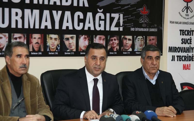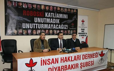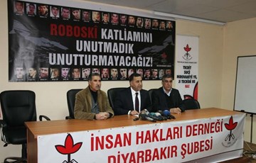 Genelkurmay Askeri Savcılığı’nın Roboskî katliamı ile ilgili yürüttüğü soruşturmada takipsizlik kararına yönelik tepkiler devam ederken, İHD Diyarbakır Şubesi, karara tepki göstermek amacıyla bir basın toplantısı düzenledi. Şube binasında düzenlenen basın toplantısına İHD Diyarbakır Şube Başkanı Raci Bilici, Şube Sekreteri Abdusselam İnceören ve Şube Yöneticisi Emin Ermin katıldı.
