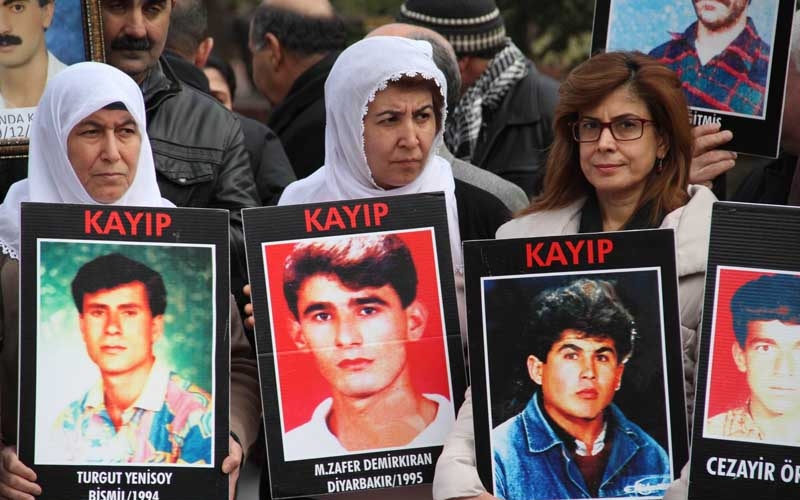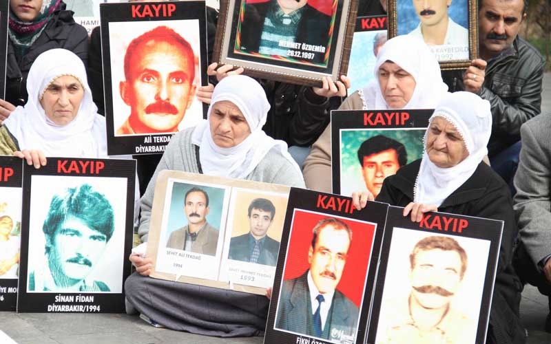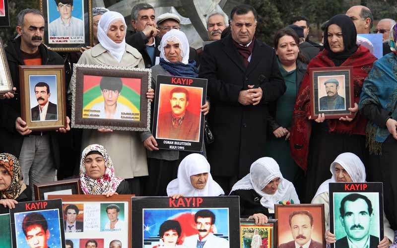 İHD Diyarbakır Şubesi ve Kayıp Yakınlarının "Kayıplar Bulunsun Failler Yargılansın" sloganıyla her hafta düzenlediği oturma eylemlerinin 259'uncusu Koşuyolu Parkı Yaşam Hakkı Anıtı önünde gerçekleştirildi. "Onlar bir gece ansızın evlerinden alındılar bir daha geri dönmediler" yazılı büyük pankartın açıldığı eyleme, İHD üye ve yöneticileri, MEYADER, SES Diyarbakır Şubesi, Barış Anneleri Meclisi ve kayıp yakınları katıldı. Eylem öncesi bir konuşmada bulunan İHD Diyarbakır Şube Başkanı Raci Bilici, Rojava ve Suriye'de devam eden savaşa dikkat çekti. Kürt halkının 'Cenevre 2' toplantısına katılımını engelleyen bütün devletleri kınadıklarını ifade eden Bilici, "Cenevre 2 toplantısına burada bulunan halkların katılımını engelleyen devletlerin bu tutumlarını kabul etmiyoruz. Bütün bu engellere rağmen halklar kendi iradesini koruyacaktır" diye konuştu. Haftalardır Diyarbakır'da yaptıkları kayıp yakınları eylemlerini sürdüreceklerini belirten Bilici, 17 bine yakın kayıp insanın varlığından ve hala bulunamadığından bahsederek, yetkililere kayıpların bulunması konusunda çağrıda bulundu. Bilici, "Bunlar işkencelerde katledildiler. Biz burada başta Cumhurbaşkanlığı, sivil toplum örgütleri ve kamuoyuna sesleniyoruz. Kürdistan'daki katliamların faillerini ortaya çıkarsınlar. Sizler bu faillerin yerlerini biliyorsunuz. Burada bulunan bu anaların ahı sizden alınacak. Siz evlerinizde rahat uyuyamayacaksınız. Biz var oldukça bu faillerin ortaya çıkması için mücadelemizi sürdüreceğiz."