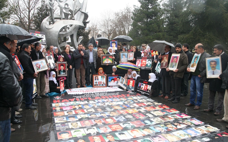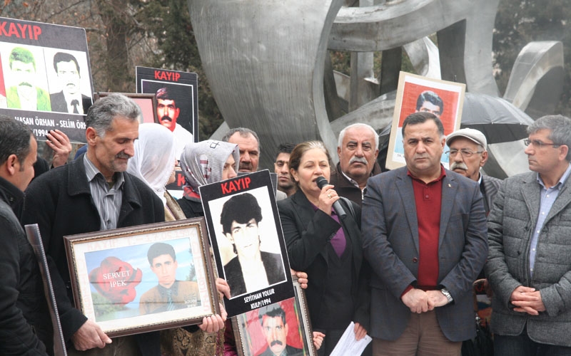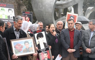 DİYARBAKIR - İHD ve kayıp yakınlarının "Kayıplar Bulunsun Failler Yargılansın" sloganı ile her hafta düzenlediği oturma eyleminde konuşan İHD Diyarbakır Şube Başkanı Raci Bilici, “Biz insan hakları savunucuları olarak şunu söylüyoruz; bu ülkede bir daha savaşın olmaması için, hak ihlallerinin yaşanmaması için, kayıplarımızın bulunması için, eşit ve onurlu bir barış için Kürtlerin lider olarak gördüğü ve bu barışın en önemli aktörü sayın Öcalan’ın bir an önce özgür olması gerekmektedir” dedi.