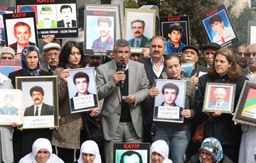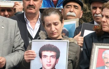 DİYARBAKIR - İHD ve kayıp yakınlarının her hafta düzenlediği oturma eyleminde bu hafta 1994 yılında İstanbul’da kaybedilen Cüneyt Aydınlar’ın kaybediliş hikayesi anlatıldı. Aydınlar’ın teyzesi Nuray Mercan Barçin, 20 yıldır Cüneyt Aydınlar’dan bir haber alamadıklarını belirterek, “Gözaltında yer göstermeye götürülürken ‘kaçtı’ dediler. Oysa görgü tanıkları vardı ve hiçbir şekilde ayakta duramadığını söylüyorlardı. Nasıl o şekilde kaçabilir?” diyerek, Aydınlar’ın akıbetinin ortaya çıkarılmasını istedi.