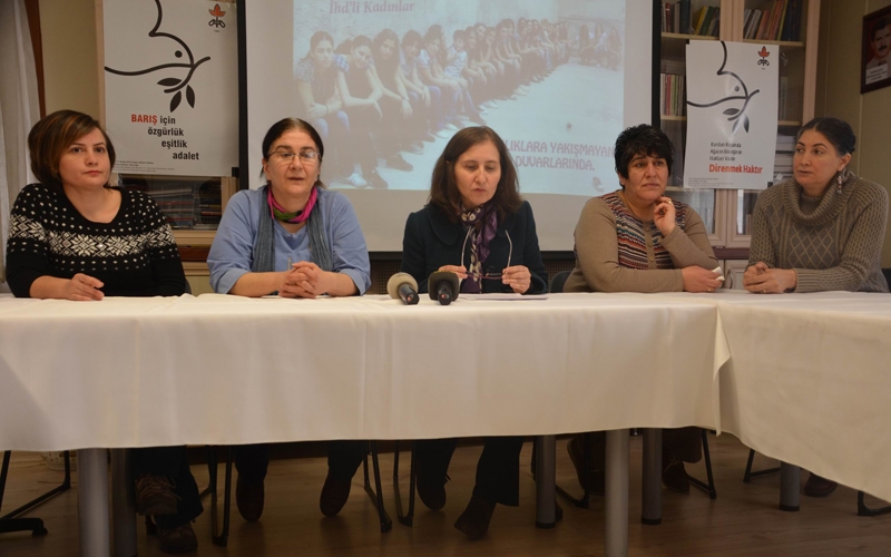 İHD, Genel Merkez binasında yaptığı basın toplantısında 2013 Yılı Kadına Yönelik Şiddet Raporu’nu açıkladı. Toplantının yapıldığı salona kadın tutsakların fotoğraflarının bulunduğu pankart asılırken, rapor İHD Genel Sekreteri Selma Güngör tarafından açıklandı. Güngör, 8 Mart 1857 tarihinde ABD’de eşit ücret ve ücret artışı için grev yapan ve fabrikayı işgal eden kadınların yangınla son bulan mücadelelerini hatırlatarak, “Bu zorlu mücadele ve kadınların eşitlik, özgürlük ve insanca yaşam mücadelesi hayatlarının son bulması ve bedenlerin örselenmesiyle sonuçlanıyor” dedi. Güngör, Suriye’den savaştan kaçarak komşu ülkelere sığınmış Suriyeli kadınların, Türkiye’de sayısını kesin olarak bilinmediğini ve cezaevindeki kadınların şiddete maruz kaldığını belirtti.