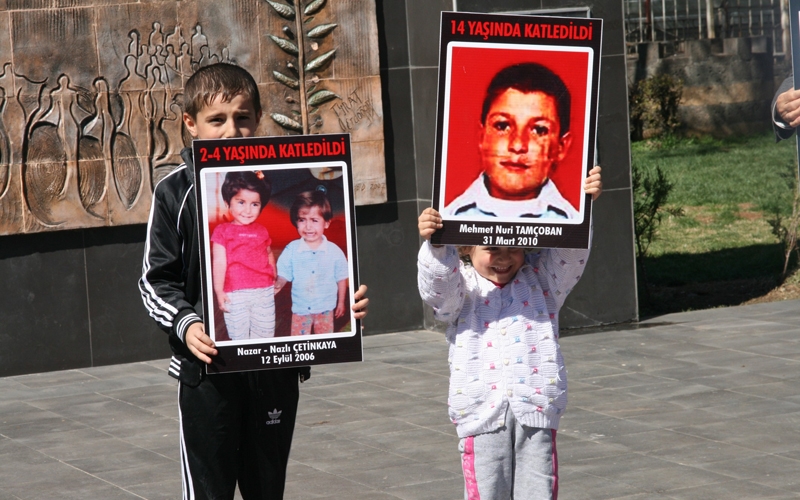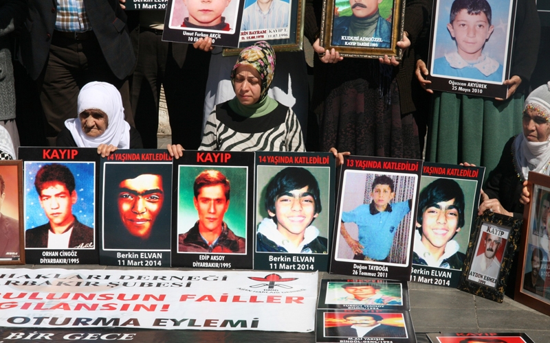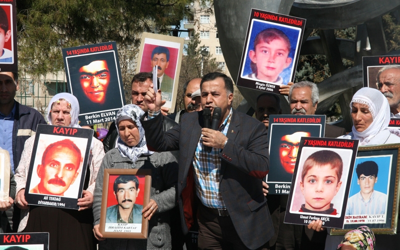DİYARBAKIR - İHD Diyarbakır Şubesi ve kayıp yakınlarının her hafta düzenlediği oturma eyleminde bu hafta, İstanbul’da öldürülen Berkin Elvan şahsında katledilen çocukları ve 1995 yılında gerçekleşen Gazi katliamında yaşamını yitirenleri andı. Eylemde konuşan İHD Şube Başkanı Raci Bilici, katliamcıların hesap vermesini isteyerek, “Uyguladığınız politikalar iflas etmiştir artık. Tek çare, daha fazla insan hakları, daha fazla özgürlük, daha fazla eşitlik, daha fazla hukuktur” dedi.